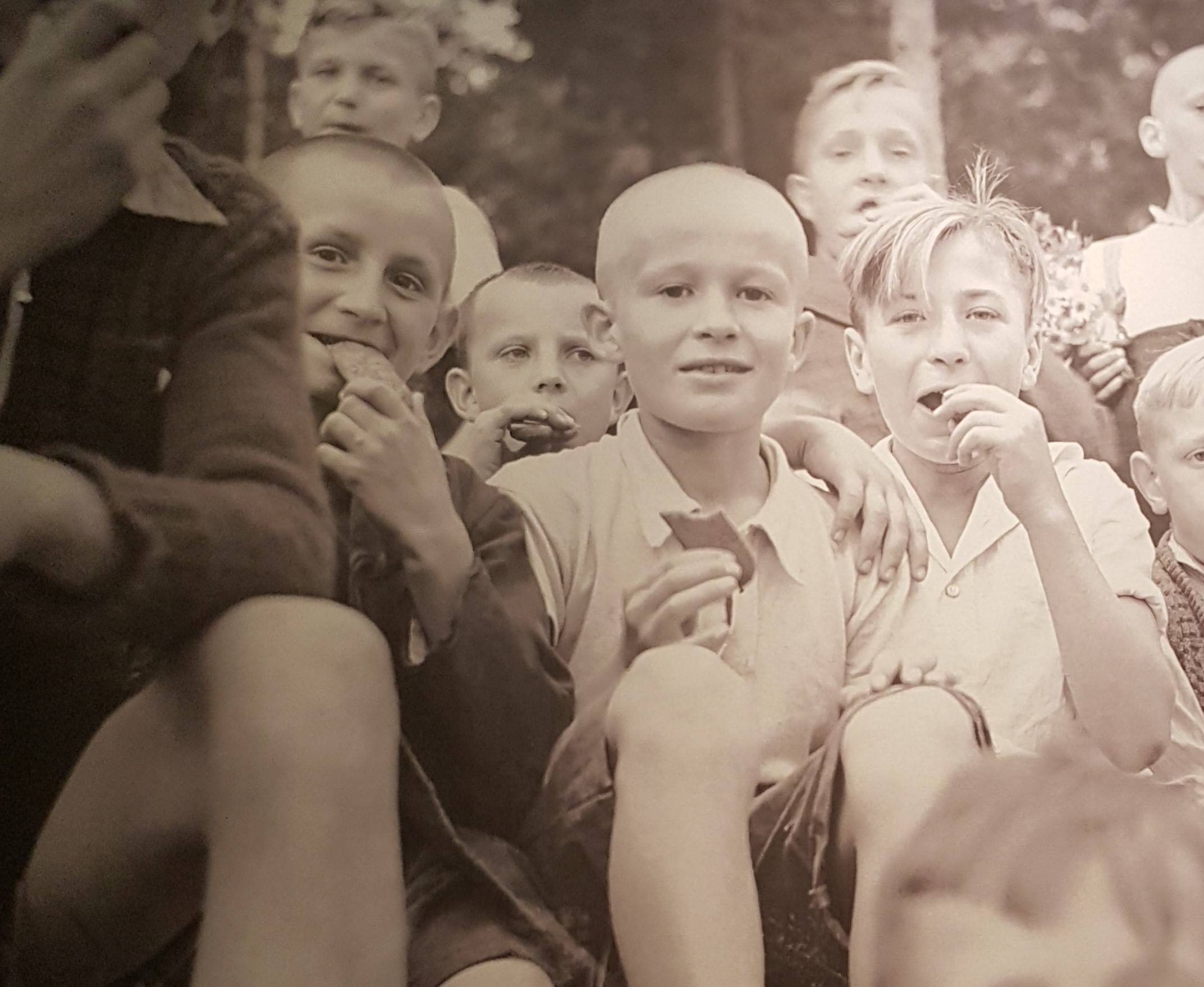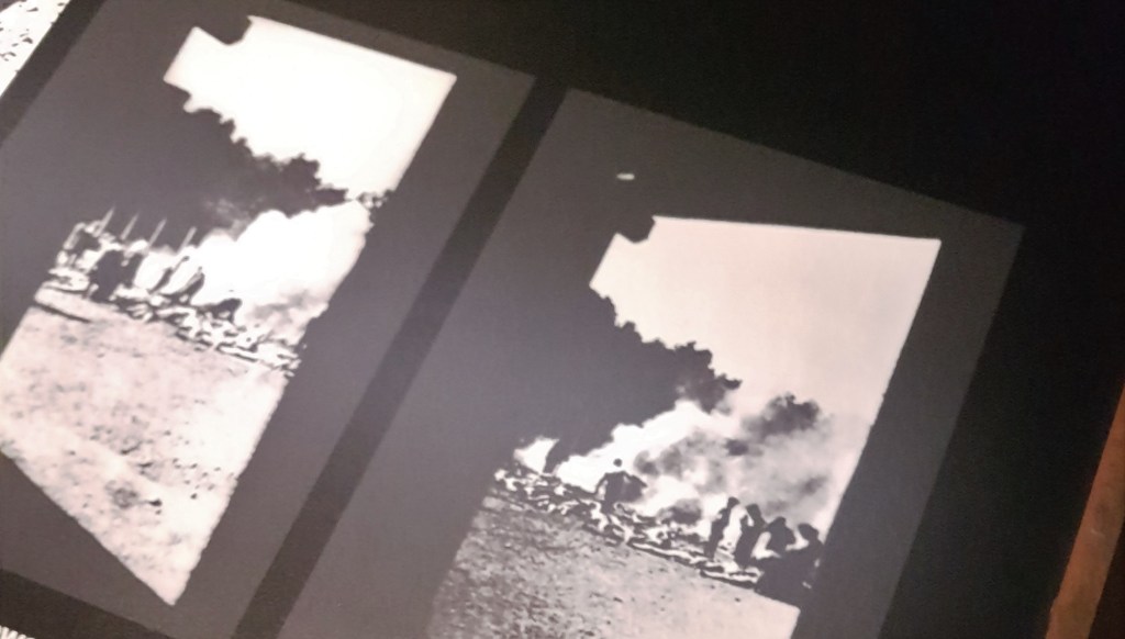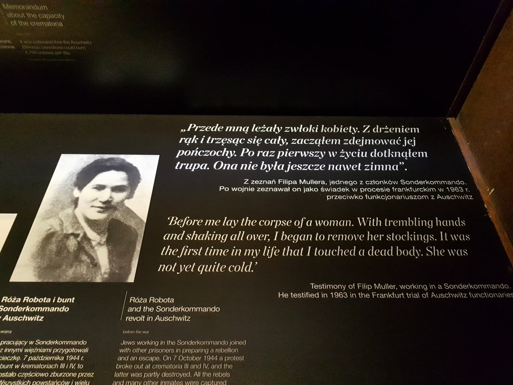 Foto-foto di atas ini adalah satu-satunya dokumentasi yang tersisa dari pembunuhan dan kekejaman di kamp Auschwitz-Birkenau, di mana di gambar ini mayat-mayat lagi dibakar di area dekat kamar gas. Orang-orang yang lagi berdiri di sisi kanan itu lagi pada antri untuk dibunuh. Foto ini diambil diem-diem sama seorang Yahudi Yunani yang bertugas untuk Sonderkommando news. Foto negatifnya diselundupin dan dibawa keluar ketika ada gerakan penolakan dari orang-orang di kamp terhadap penyiksaan ini.
