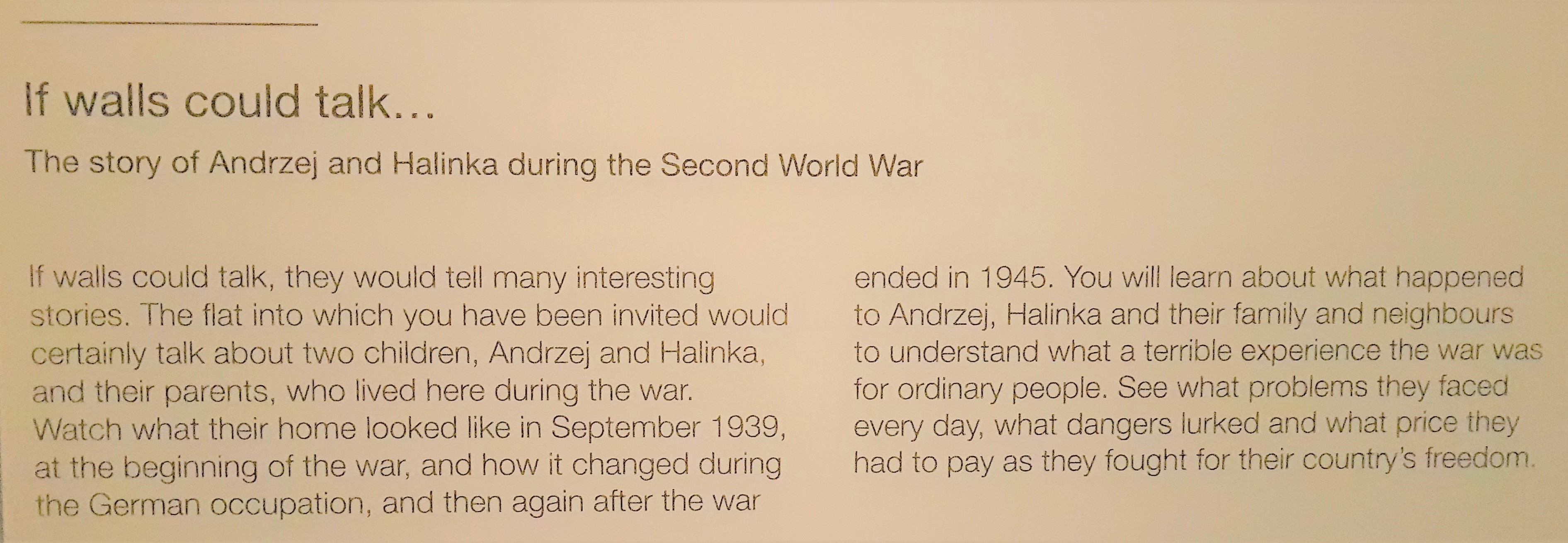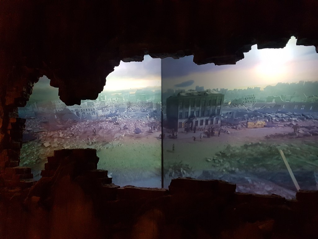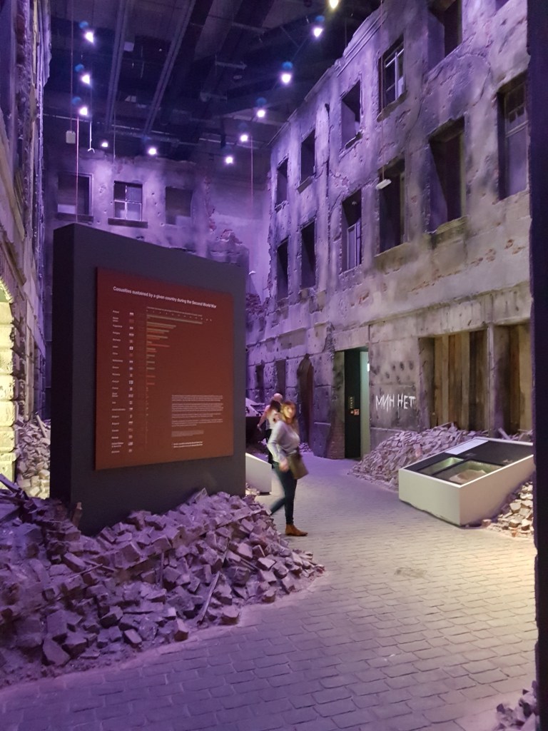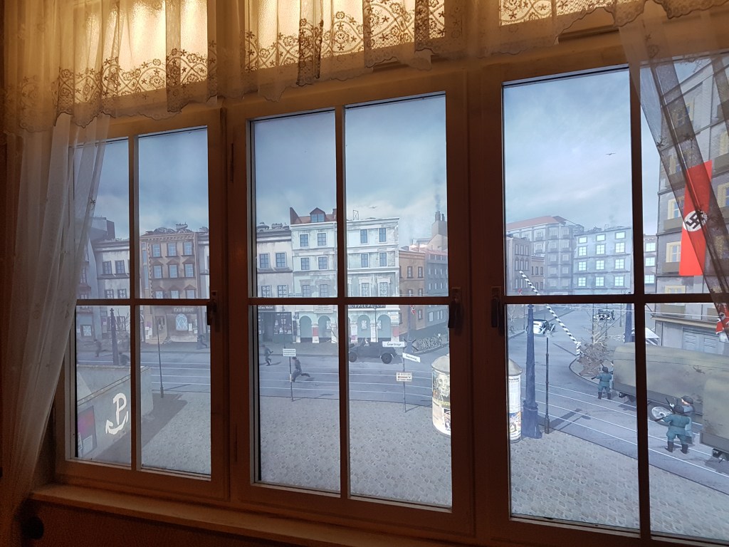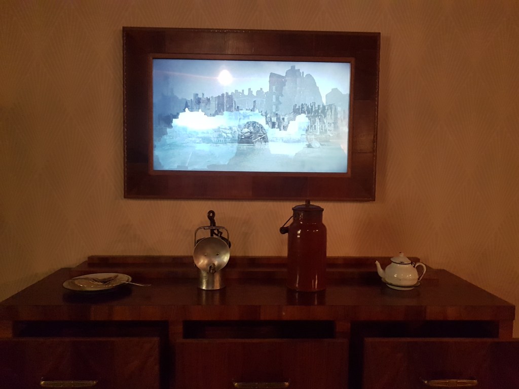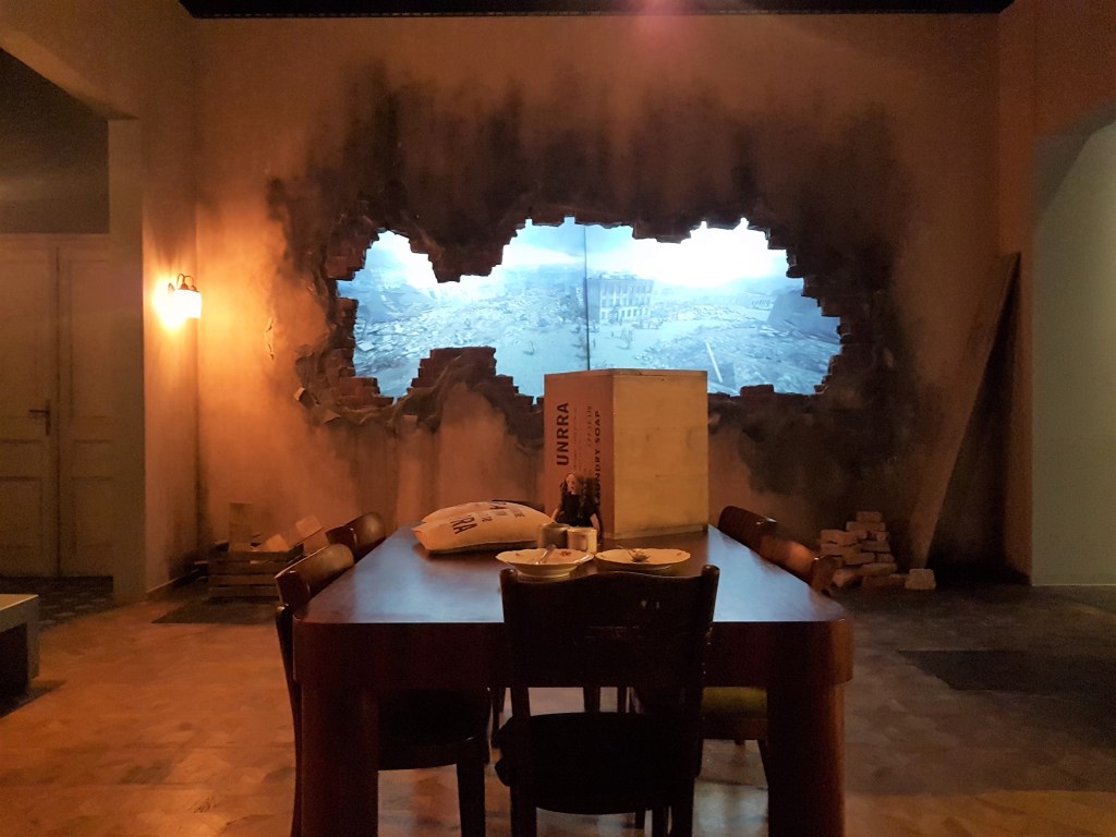 Bagian pertama yang gue liat adalah simulasi dampak perang ke sebuah keluarga berkecukupan dengan dua orang anak di Polandia. Simulasi ini nunjukin seberapa jahatnya perang berdampak ke kehidupan warga sipil yang nggak ngerti apa-apa. Kita bisa liat transisi kehidupan mereka lewat replika-replika ruangan yang dibuat. Ruangan-ruangan ini nunjukin perubahan kondisi mereka dari tahun ke tahun, dari yang rumahnya nyaman dan terang benderang sampe jadi surem banget.