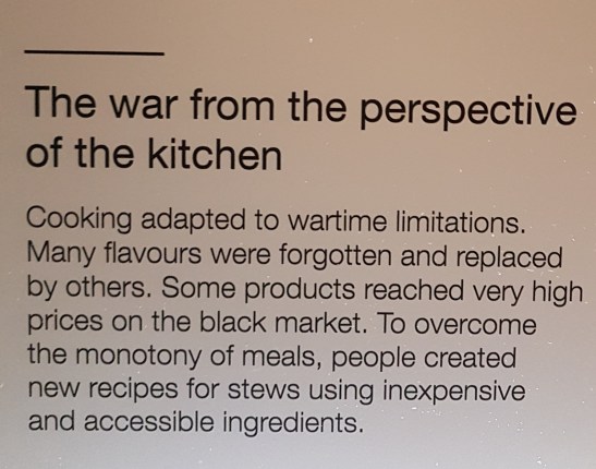 Di bawah ini kita bisa liat kalo di masa perang dilakukan food rationing atau pembatasan makanan. Makanya lo liat ada kupon-kupon makanan di salah satu foto. Karena ada pembatasan makanan, bumbu-bumbu masakan juga jadi banyak banget yang susah didapet dan rasanya jadi terlupakan (sediiih), udah gitu harganya di pasar gelap juga tinggi banget, akhirnya orang-orang pada kreatif bikin resep baru dengan bahan yang lebih murah.