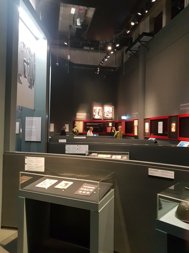 Setelah ngeliat transisi rumah salah satu warga sipil yang bikin hati sedih tadi, gue lanjut ke ruangan-ruangan lain yang nyajiin sekian banyak informasi yang bikin hati makin ndredeg lagi. Mulai dari berkembangnya ideologi-ideologi ngehe di Eropa sana sampe perlakuan semena-mena ke banyak warga sipil. Udah gitu banyak video dan foto liputan pas masa Perang Dunia II itu pula. Jadi dari salah satu video reporter yang ditayangin di sana, si reporter cerita kalau dia ya tugasnya emang murni ngeliput Perang Dunia II aja. Dia nggak boleh ikut nolong sedikitpun walaupun korban-korban ini teriak-teriak kelaperan, berdarah-darah, atau minta ditolong di depan dia. Gila bisa nggak tenang gue seumur hidup pulang dari sana. T_T