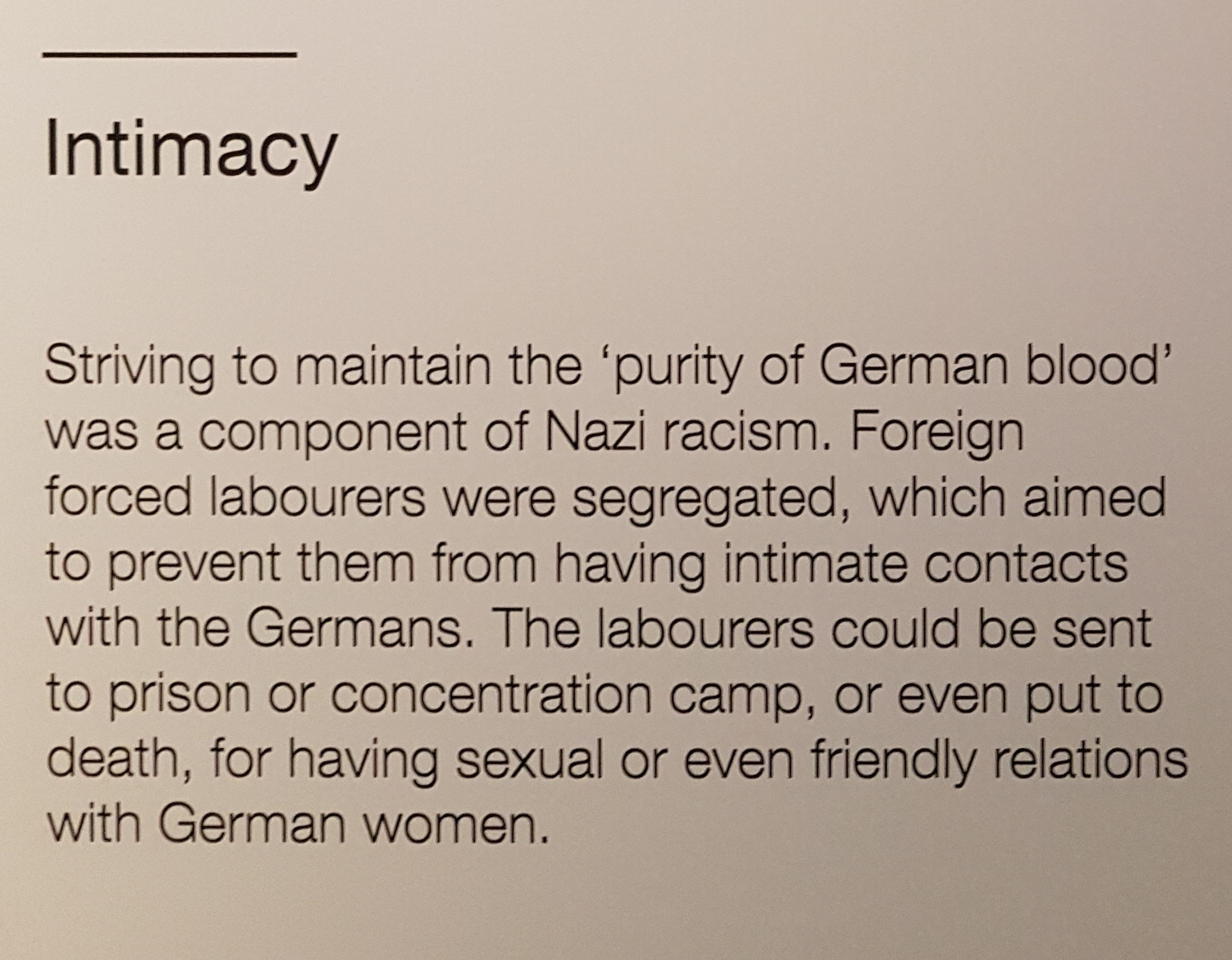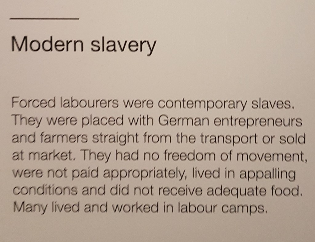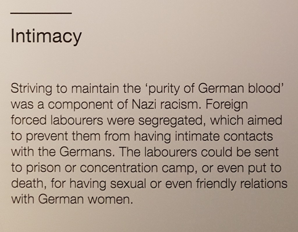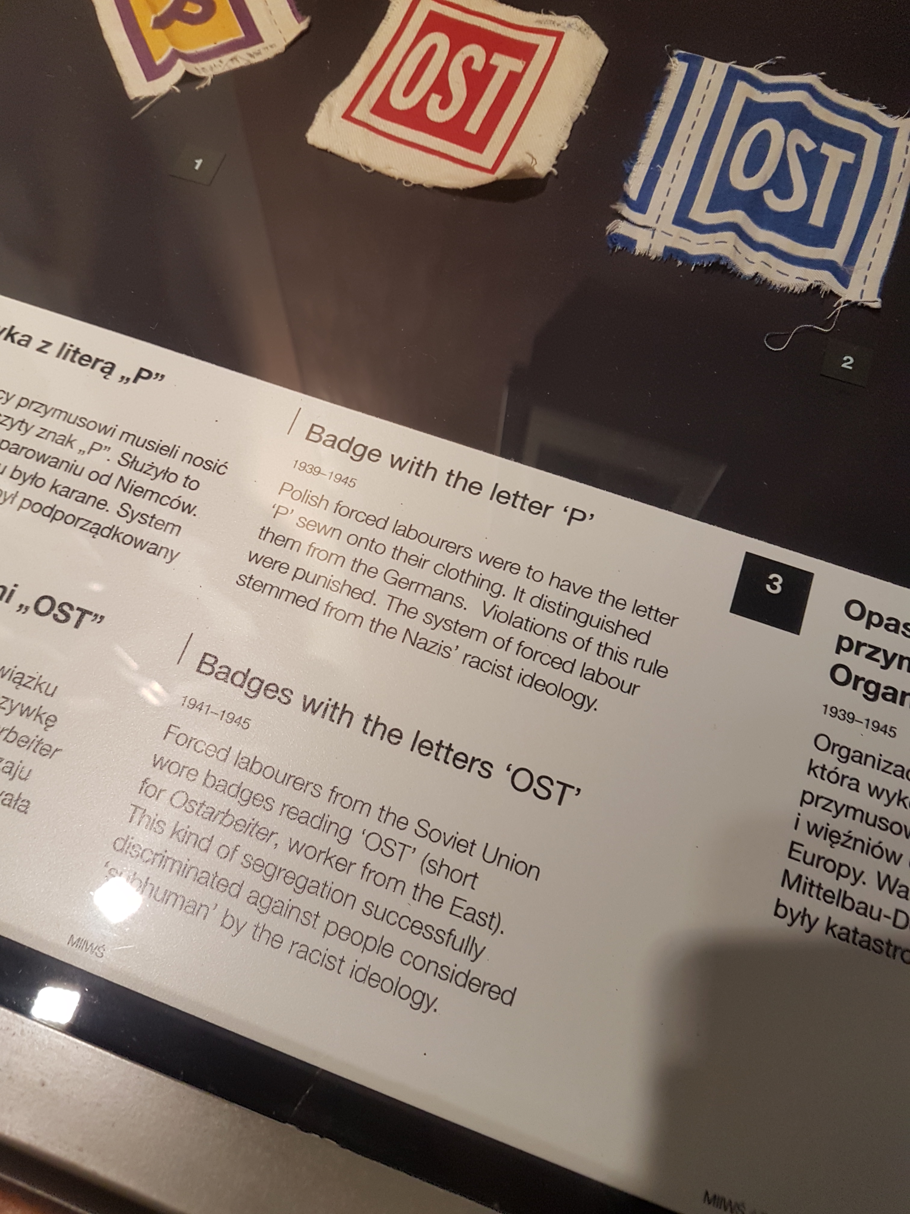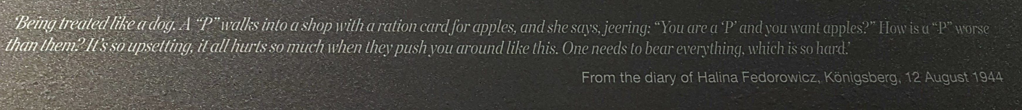 Di masa itu buruh-buruh non-Jerman dipakein emblem di baju mereka. “OST” (Ostarbeiter) untuk pekerja dari Timur/Uni Soviet, dan “P” untuk pekerja dari Polandia. Saking rasis dan merendahkannya perlakuan ini, salah satu pekerja “P” nyatet suatu kejadian yang dia alamin di buku hariannya.