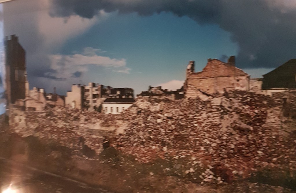 Yang di bawah ini gue pikir kan simulasi apaan, yah, kok bagus gitu bangunan percontohannya. Taunya tujuannya buat nunjukin bedanya kondisi Polandia sebelum dan sesudah perang. Sedih banget, deh.