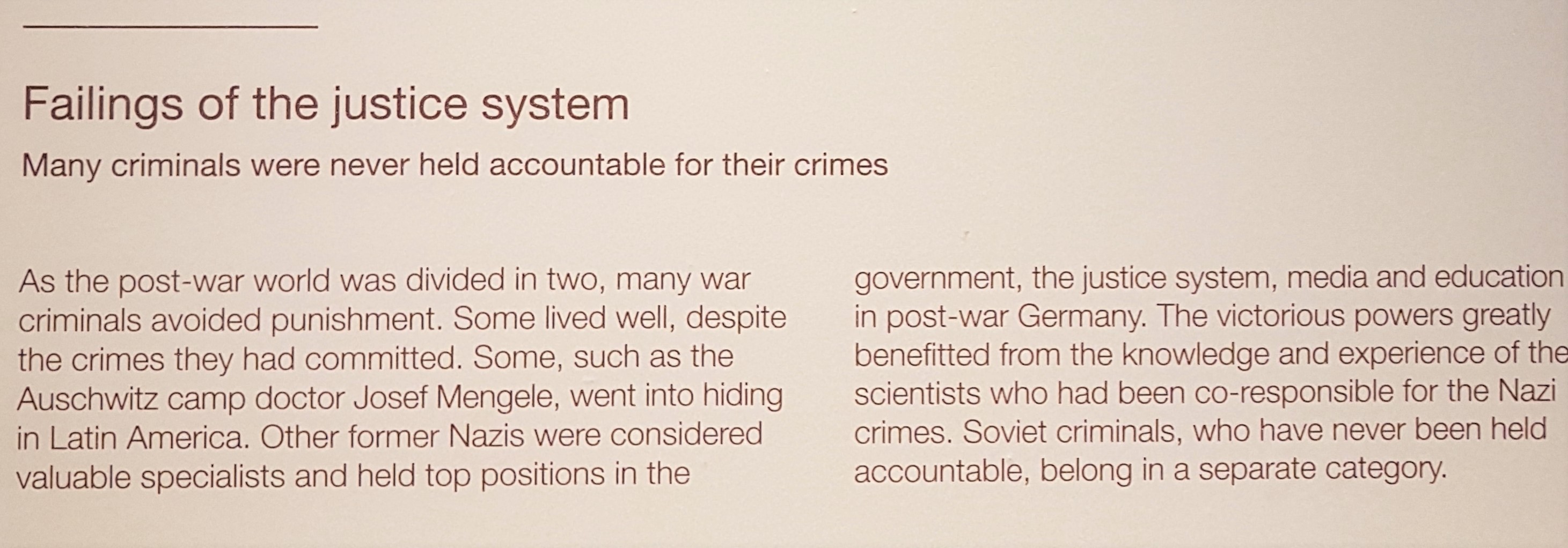 Walau banyak pelaku kriminal perang dari Jerman dan Jepang yang disidang, banyak juga yang nggak pernah dihukum dan menjalani kehidupannya dalam persembunyian. Dilindungi orang-orang yang punya kuasa, Vatikan, beberapa negara Amerika Selatan, atau rekan-rekan senegara orang-orang kriminal ini yang nggak mau ngurusin masa lalu mereka lagi. Pelaku kriminal dari Soviet kagak pernah ada yang disidang. TOKAY, KAN?!