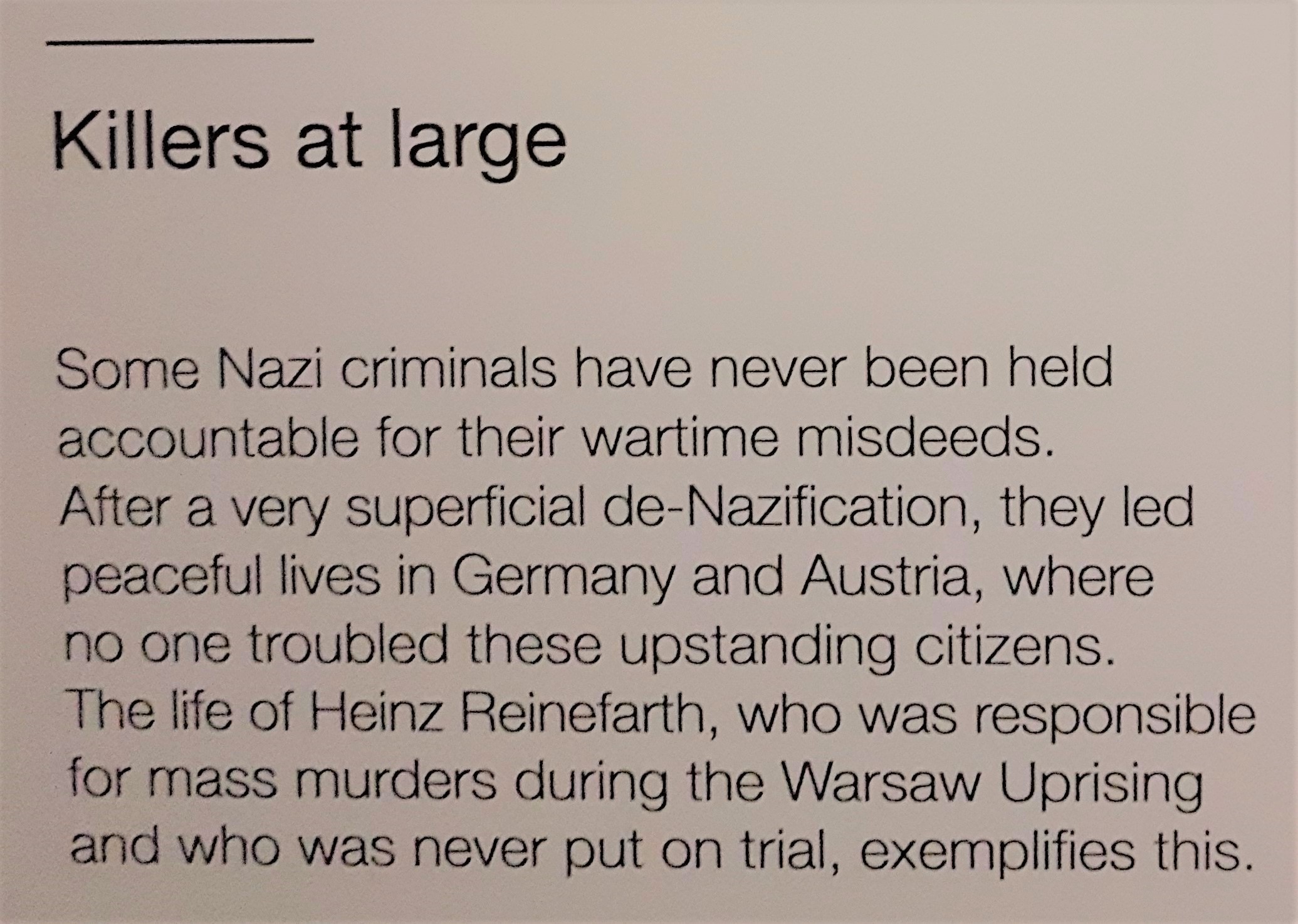 Tau nggak apa yang paling menyedihkan dari ini semua selain negara-negara yang kena dampak perang harus ngebangun ulang semuanya? Selain banyak keluarga harus nyari keluarga mereka yang ilang dan bangun kehidupan mereka kembali? ADALAH BAHWA BANYAAAK BANGET PELAKU KEJAHATAN SELAMA PERANG DUNIA NGGAK KETANGKEP DAN MALAH BISA IDUP TENANG. LENGGANG KANGKUNG, PEMIRSA!