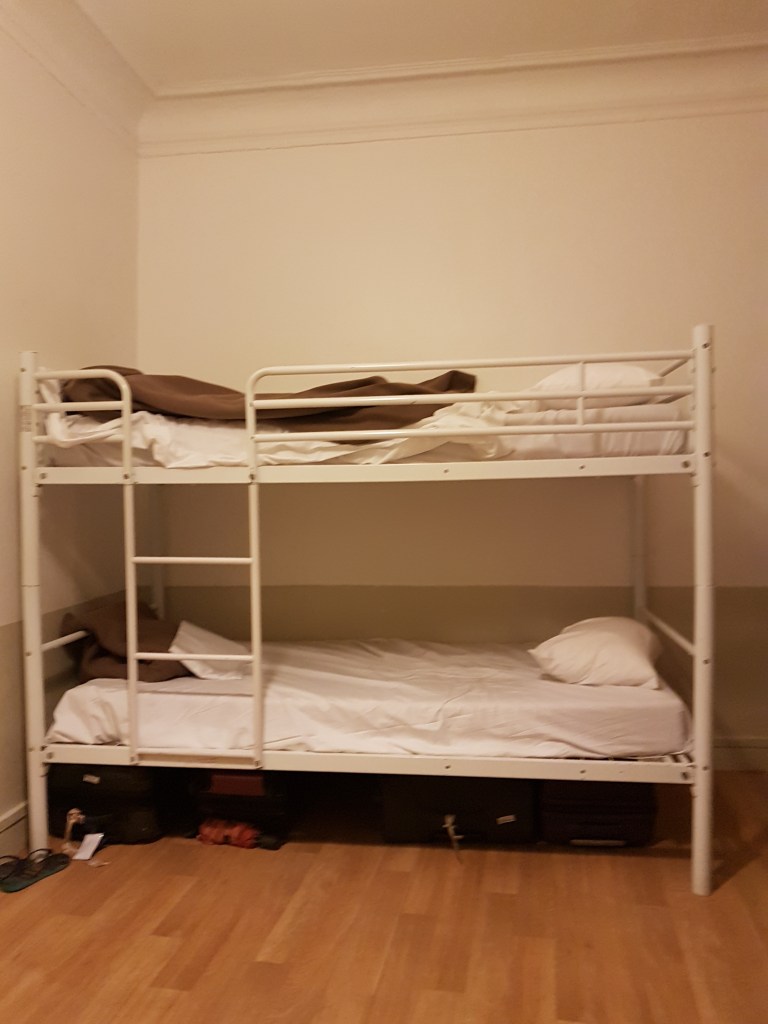 Gue nginep di “Le Regent Montmatre by Hiphophostels.” Lokasinya deket banget sama Metro, tepatnya Anvers Metro Station (50 m). Waktu itu rate semalem 25 Euro dan ruangannya sharing gini (campur cowok-cewek). Berhubung gue cuma dua hari jadi gue pikir nggak papa juga nyampur, toh bakal lebih sering di luar.