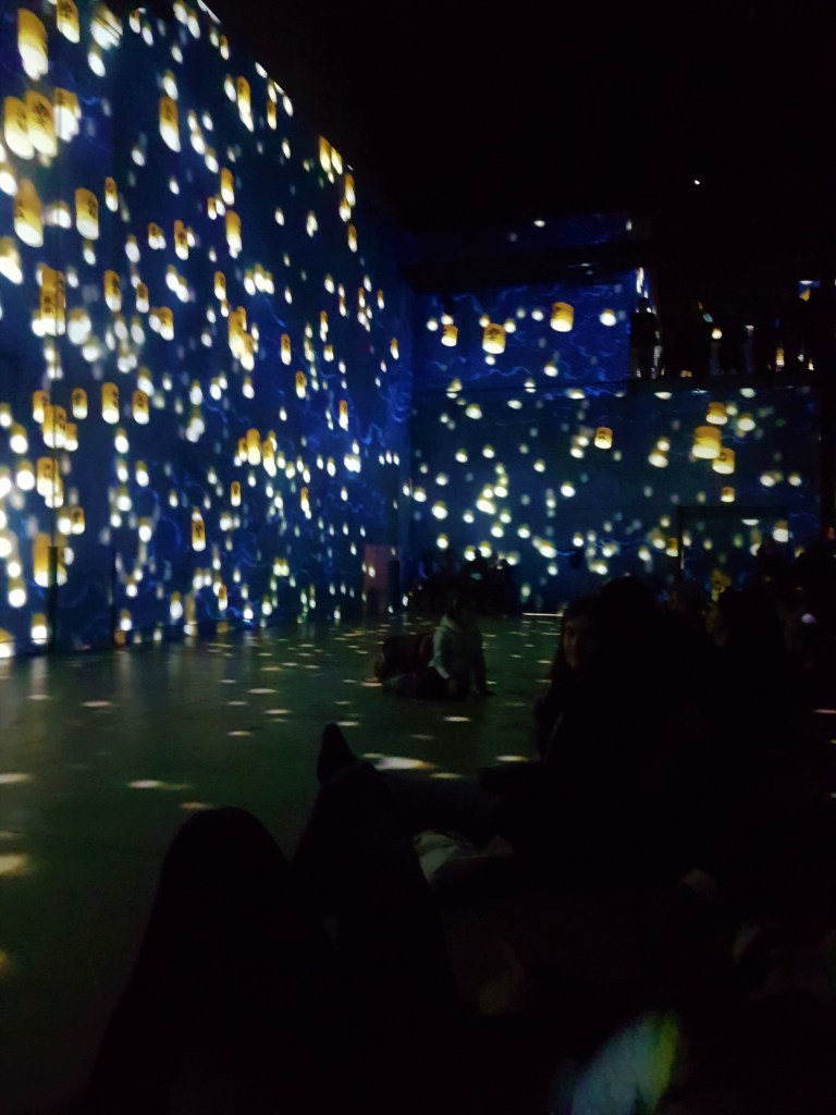 Di luar videonya Van Gogh, kayak yang gue tulis di IG post atas, ada juga dua tayangan lain yang diproyeksiin, salah satunya “Dreamed Japan.” Waktu itu juga magis banget pas lukisan immersive lampion di bawah ini keluar.