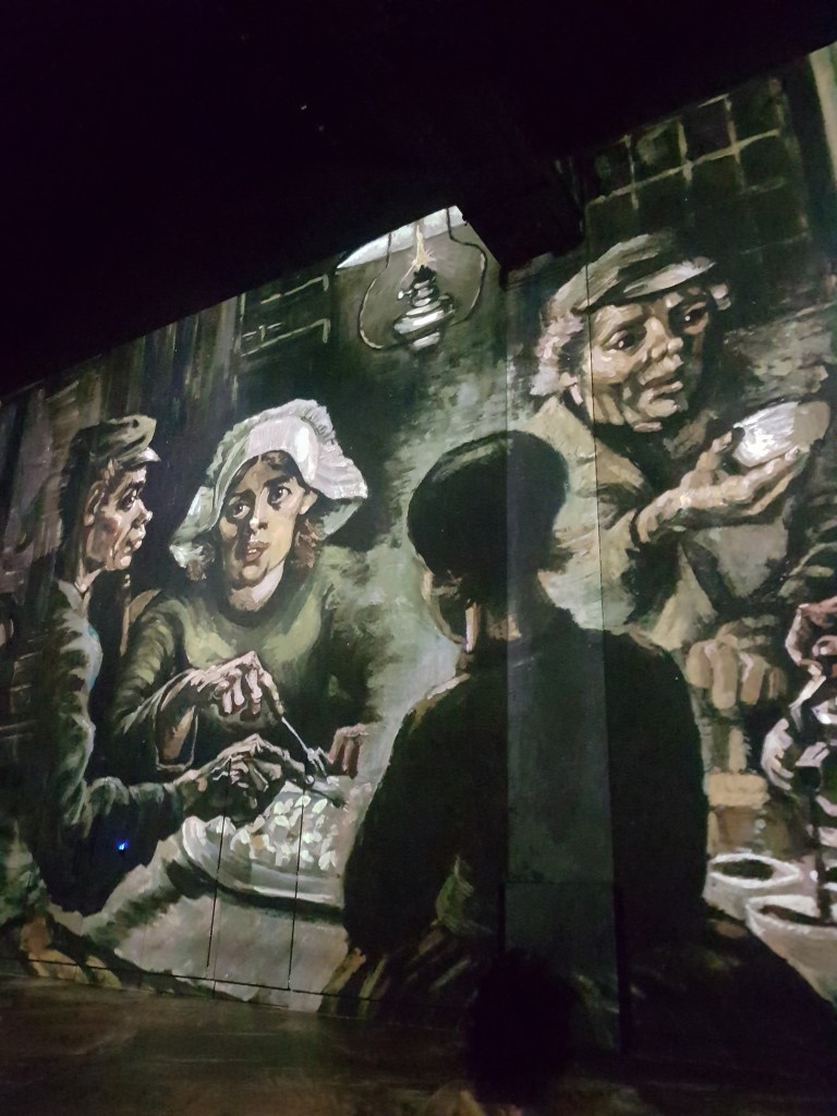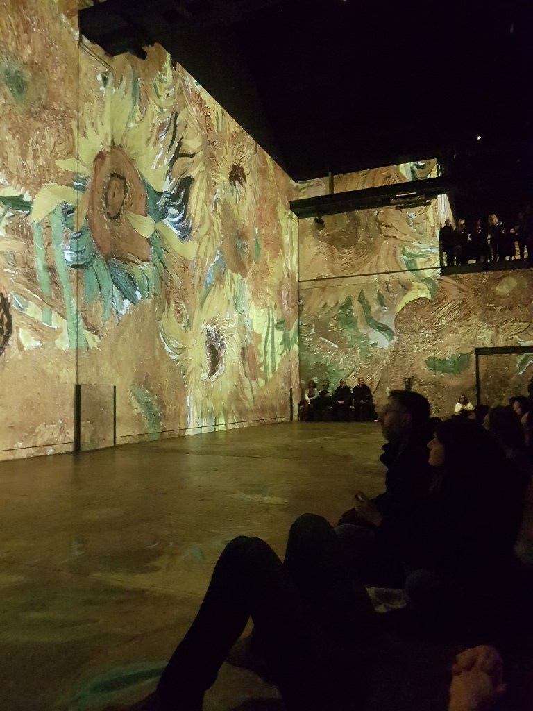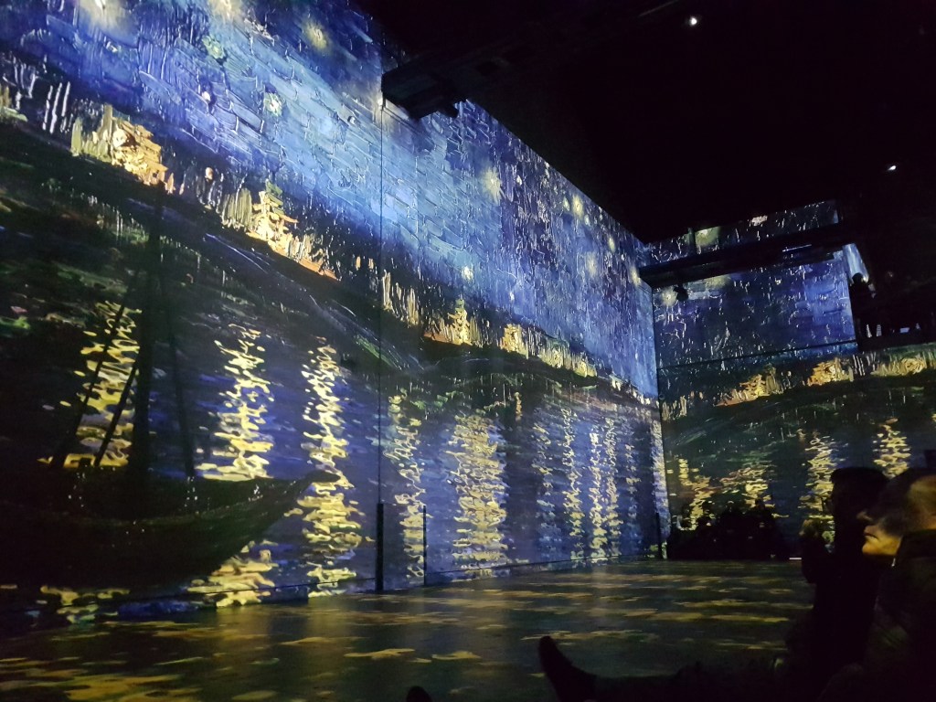Kelar ngopi, waktunya nonton pameran immersive art-nya Van Gogh, “Starry Night,” di Atelier des Lumieres. Waktu itu pamerannya berjalan dari 22 Februari 2019 sampe 5 Januari 2020. Jadi yang dipamerin tuh lukisan-lukisan Van Gogh yang udah dikonversi ke bentuk digital dan dijadiin rangkaian video, terus diproyeksiin ke SELURUH DINDING di ruangan yang bentuknya kayak gudang.