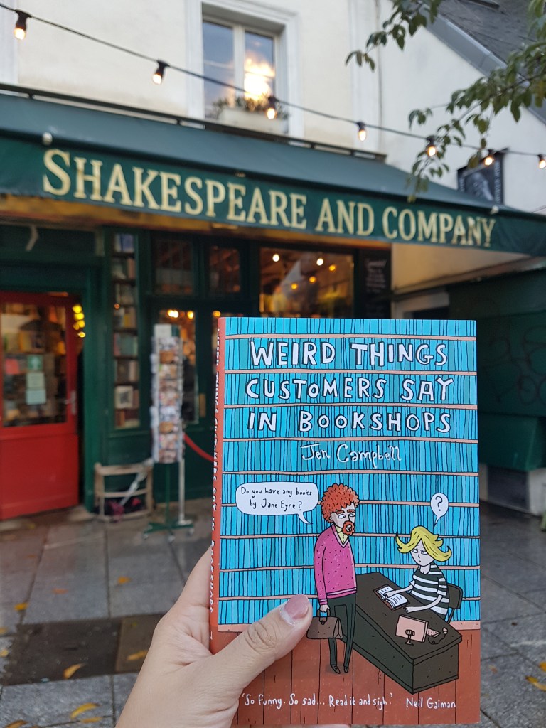 Di dalem Shakespeare & Company (buku-buku yang dijual berbahasa Inggris, kok) nggak boleh foto, tapi keliling-keliling ngeliat suasana toko bukunya lagi aja udah hepi banget gue, dan mumpung di sana gue juga sekalian beli beberapa buku.