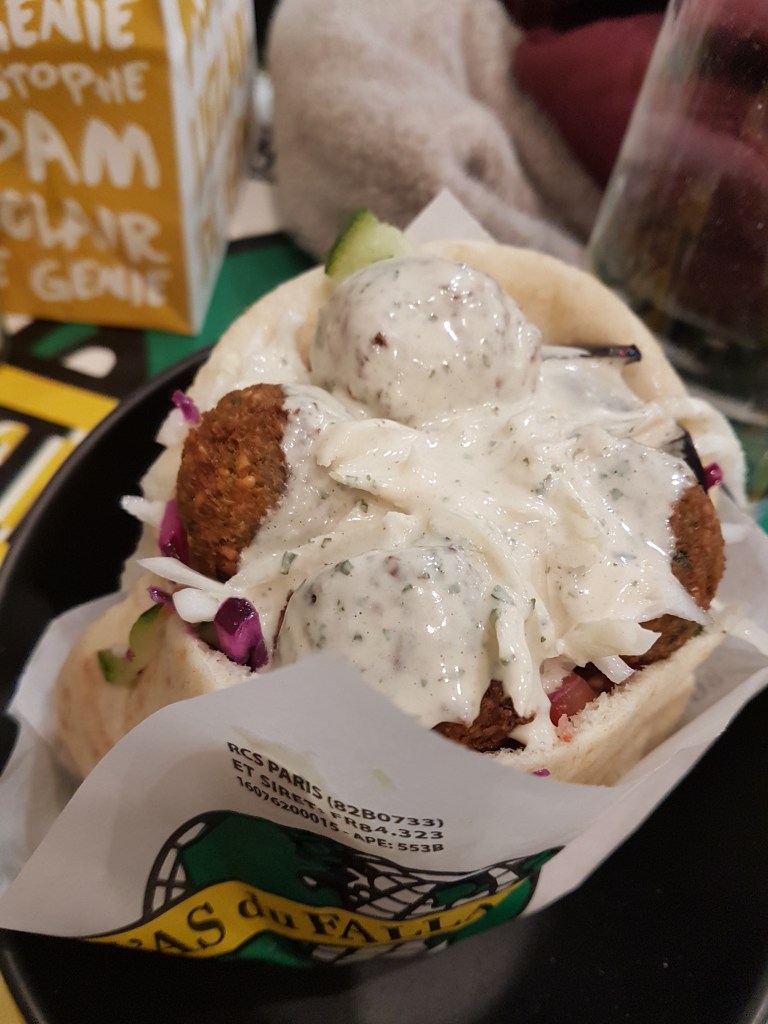 Kelar nge-wine dan makan sup di sana, gue masih laper. LOL. Berhubung udah di Le Marais, gue sekalian aja ngenyangin perut dengan nyobain tempat falafel yang kata orang-orang terkenal banget di Paris, L’as du Fallafel. Falafelnya enak, sih, cuma emang bukan selera-selera gue amat, jadi buat sekadar nyoba aja gitu. Tapi ada banyak menu lain juga, kok! Kayaknya menarik untuk dicoba next time.