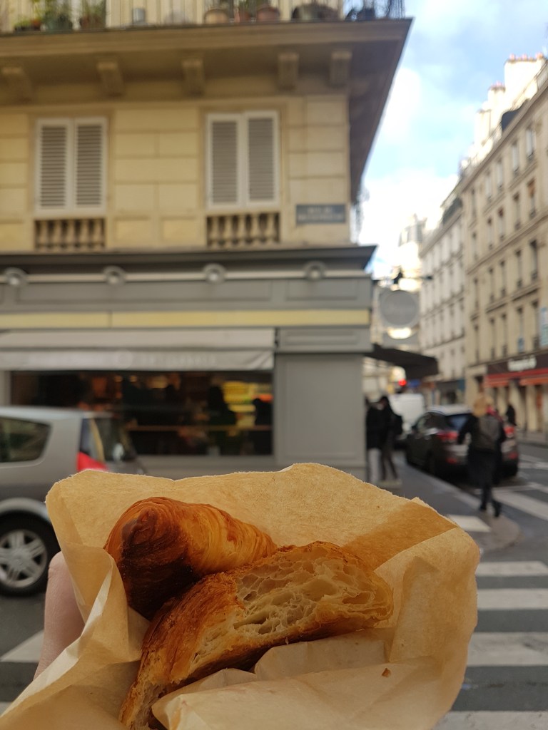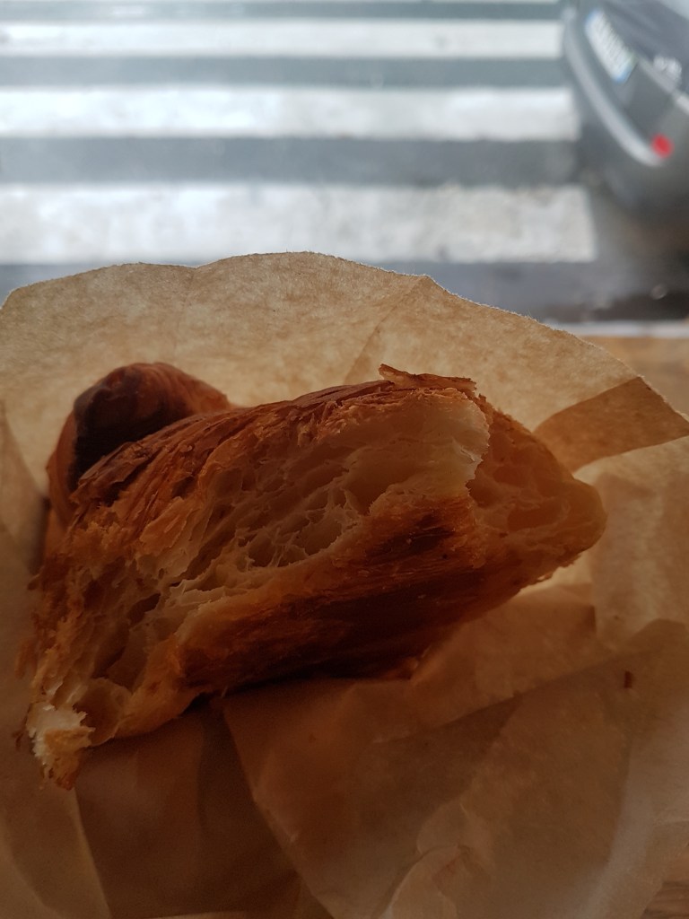 Besoknya adalah hari H ke pameran digitalnya Van Gogh! KYAAA! Karena jadwal pamerannya siang, jadi pagi-pagi gue cari croissant sama kopi dulu. Croissant-nya gue beli di toko roti “Utopie.” Rasanya? ENAAAAAAK BANGET! Duh, kadar butter-nya tuh pas lah pokoknya, meleleh di mulut. Tekstur croissant-nya juga lembut. Harganya cuma 1,10 Euro. SO HAPPY.