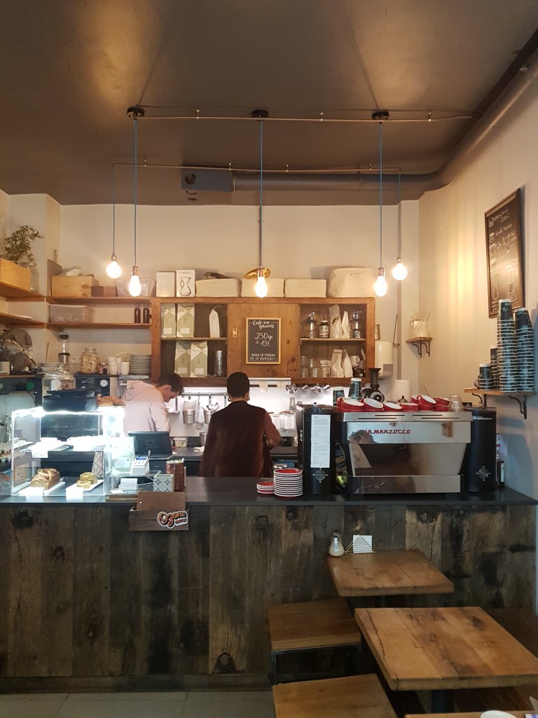 Kelar bengong-bengong terpukau di depan proyeksi lukisan-lukisan Van Gogh, gue lanjut cari makan dan ngopi lagi. Makannya di Kodawari Ramen Tsukiji yang gue tulis di atas. Terus karena gue nggak kreatif dan males mikir kebanyakan, gue balik ke daerah Le Marais lagi. LOL. Kenapa? Soalnya temen gue ngerekomendasiin satu coffee shop enak dan satu jajanan lagi. Yang coffee shop namanya Le Peloton, dan kopinya kali ini beneran enak… soalnya yang punya orang Aussie. Nyahaha. Warga lokal atau kalian yang tukang ngopi di sana harap jangan marah. Mohon beta dicerahkan di kolom komen kalo kalian punya rekomendasi tempat-tempat ngopi enak di Paris.
