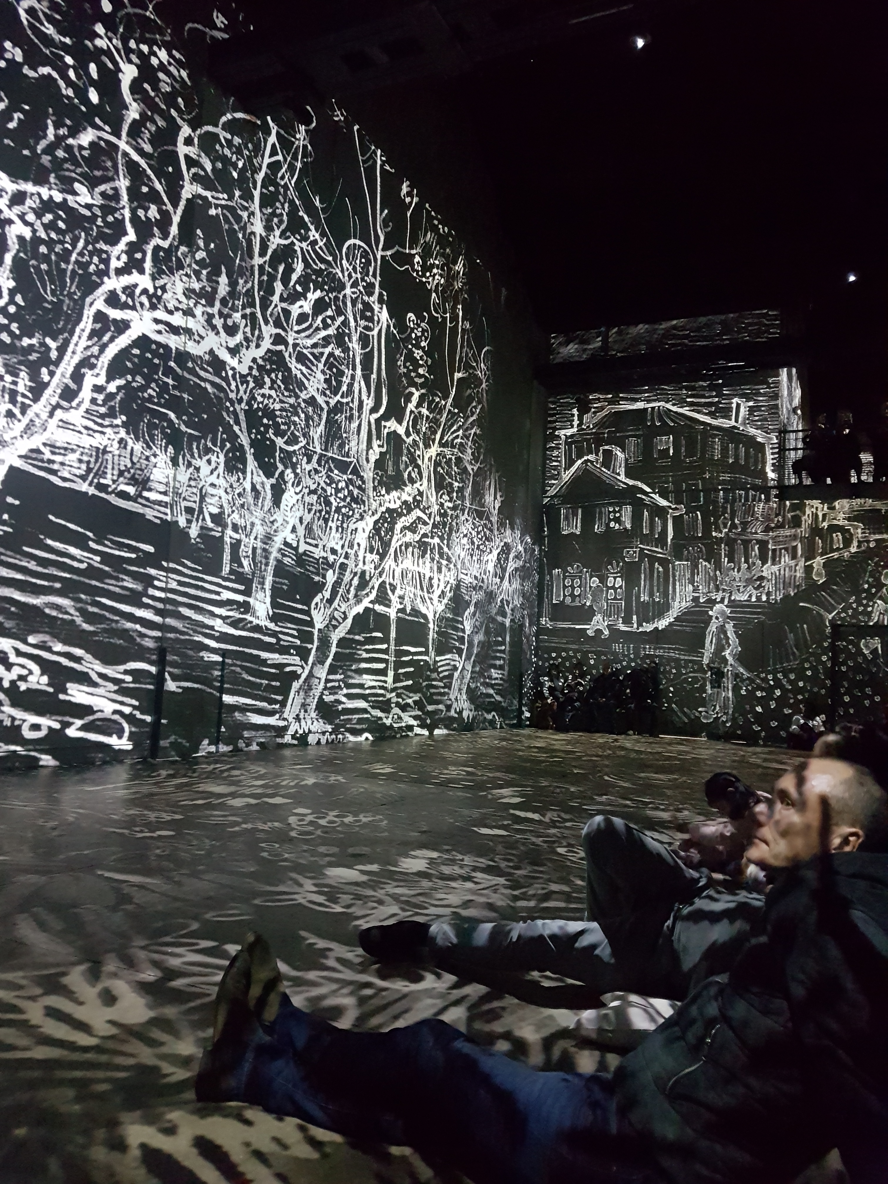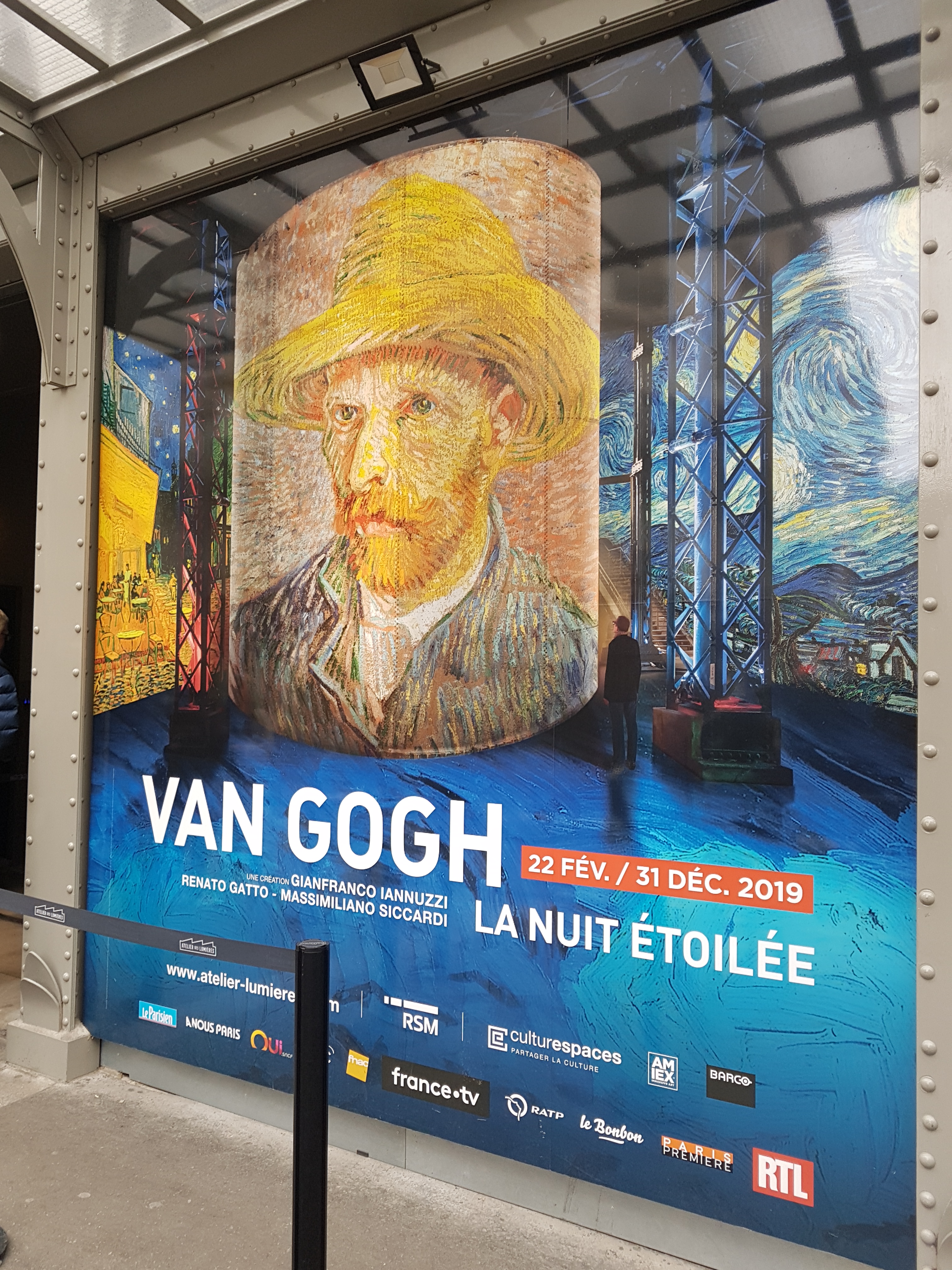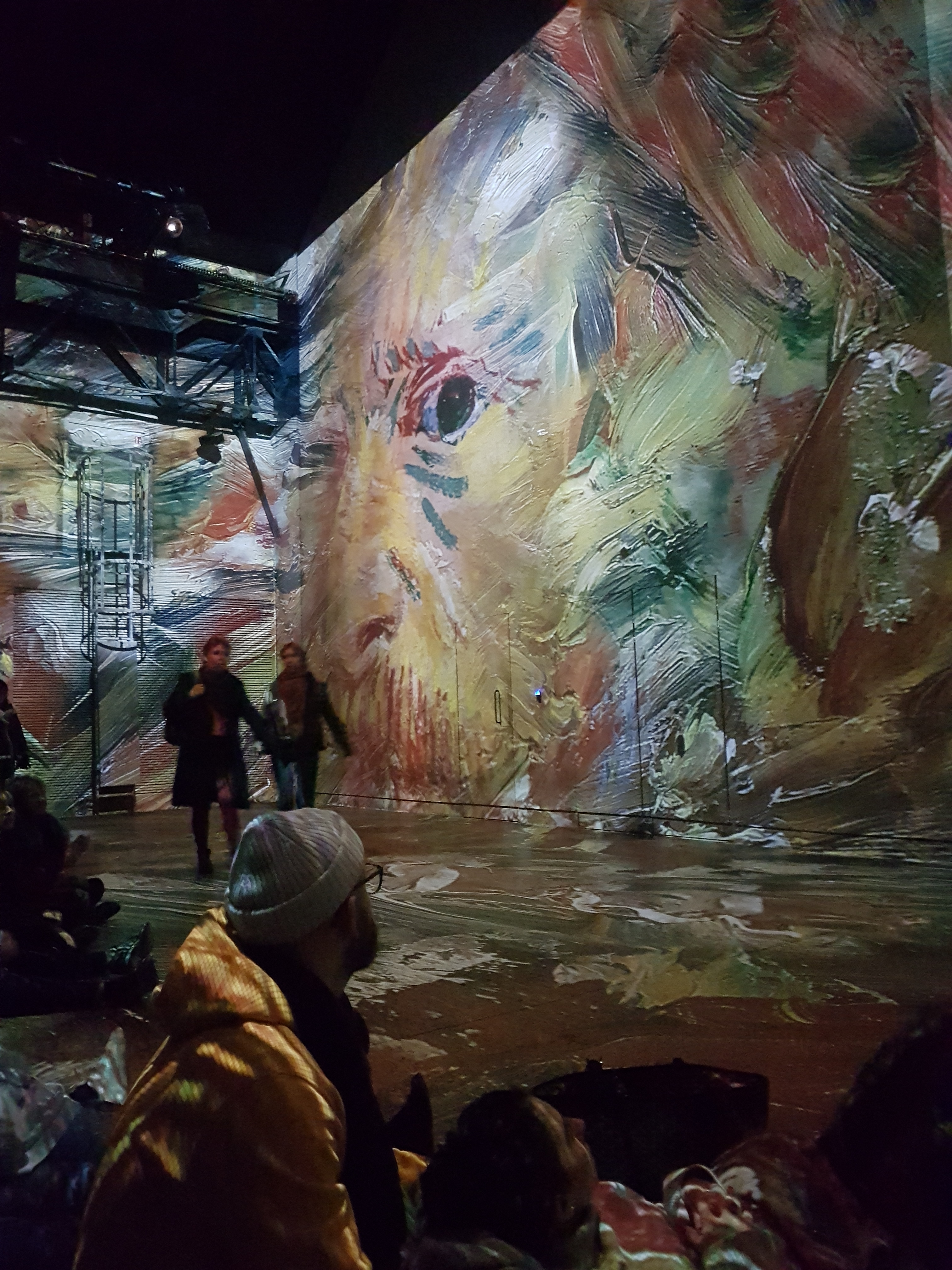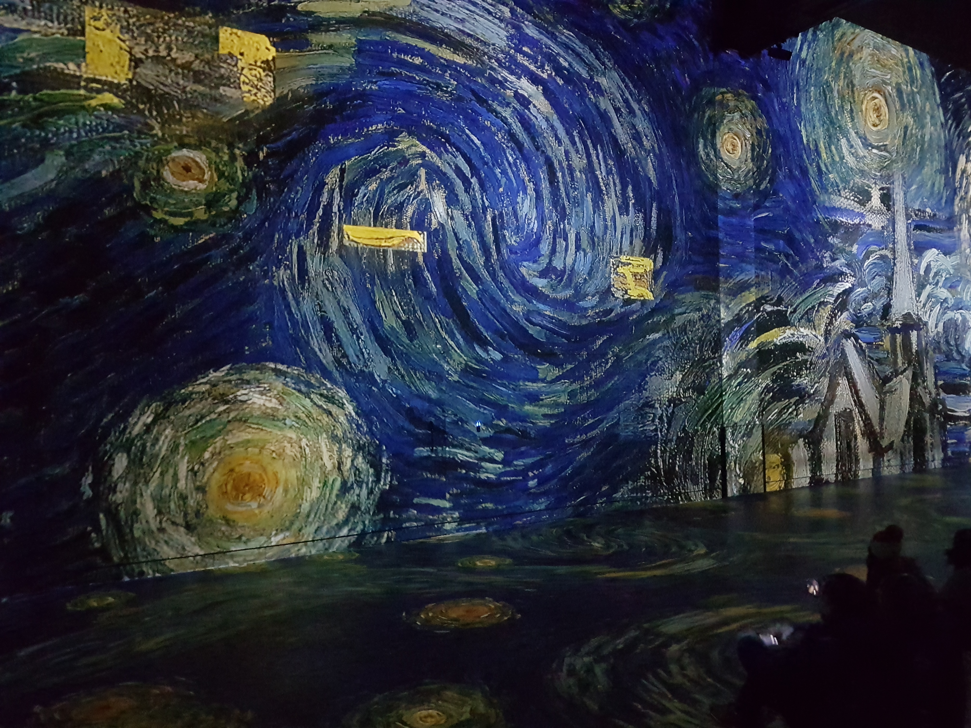 Kelar ngopi, waktunya nonton pameran immersive art-nya Van Gogh, “Starry Night,” di Atelier des Lumieres. Waktu itu pamerannya berjalan dari 22 Februari 2019 sampe 5 Januari 2020. Jadi yang dipamerin tuh lukisan-lukisan Van Gogh yang udah dikonversi ke bentuk digital dan dijadiin rangkaian video, terus diproyeksiin ke SELURUH DINDING di ruangan yang bentuknya kayak gudang.