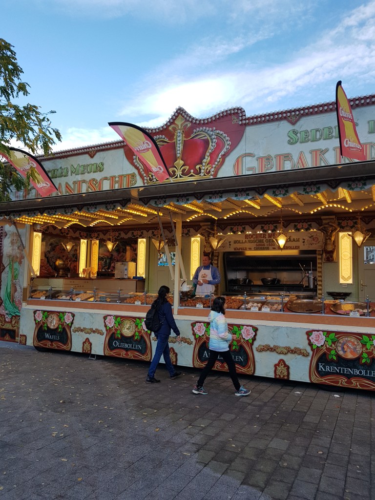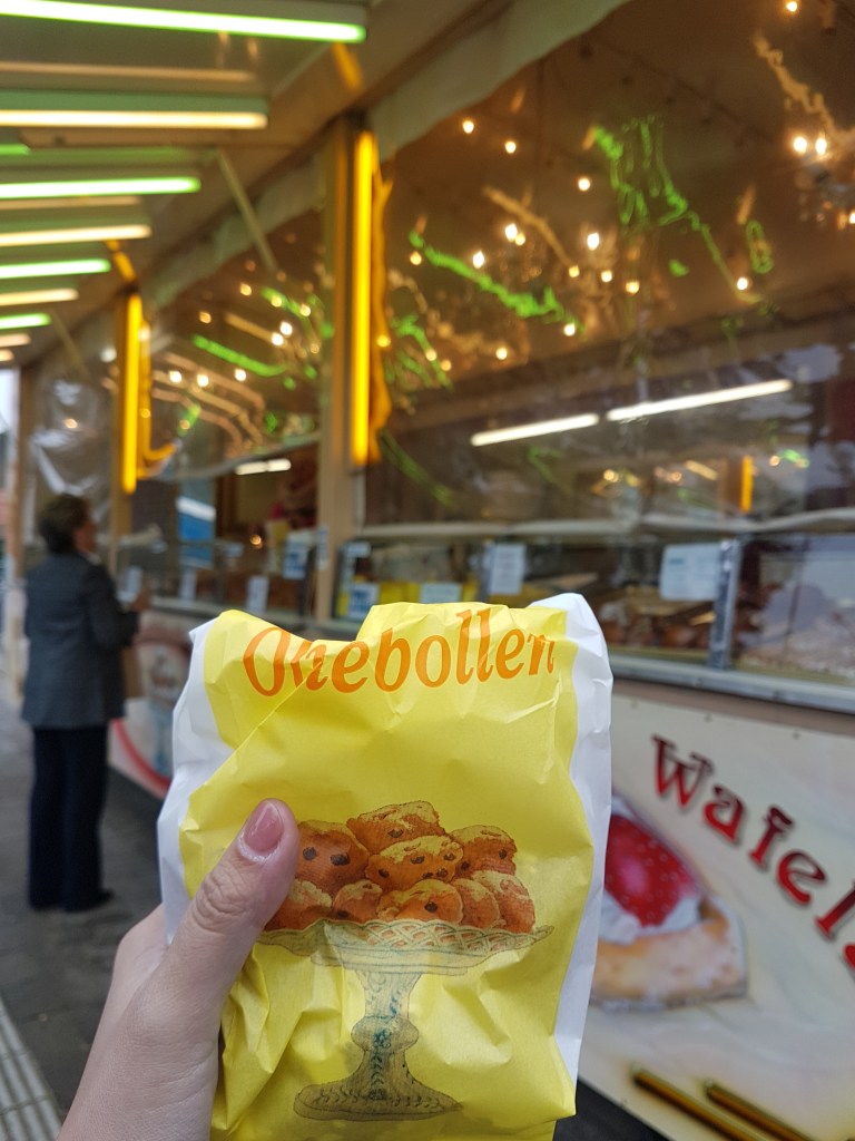 Yang satu ini adalah Oliebollen truck. Sebelumya gue udah cobain juga pas masih di Amsterdam. Sepemahaman gue dan menurut cerita temen-temen yang tinggal di Belanda, kalo masuk musim Natal atau musim dingin di sana, si tukang jualan oliebollen ini akan bermunculan, walaupun sepanjang tahun kalo mau dicari ya ada aja si oliebollen ini. Oliebollen ini sendiri apa? Semacam donat versi Belanda gitu, sih, tapi nggak bolong di tengah. Rasanya sih kayak buntelan adonan yang digoreng aja gitu, terus atasnya ditabur gula halus. Luarnya biasanya agak crunchy, dalemnya empuk. Sebenernya secara kalori sih mayan yah si oliebollen ini. Tinta adin nilai gizinya pun, sister~ Tapi kalau udah sampe Belanda mah… coba aja. Buat tanda jadi gitu. LOL. Rasanya juga nggak spekta-spekta amat sih, tapi harus gue akui kalo makan oliebollen anget pas cuaca lagi dingin-dinginnya tuh emang menyenangkan. Terus makannya sambil nyeruput teh atau Chocomel panas (yang yuyuuur, gue baru sadar rasanya manis buanget setelah sekian lama nggak minum). Tapi emang kalo lagi liburan tuh kagak usah diet-dietan dulu ya, shay. Lebih seru kalo punya pengalaman nyobain makanan lokal, biar ada yang bisa diceritain, hihi.