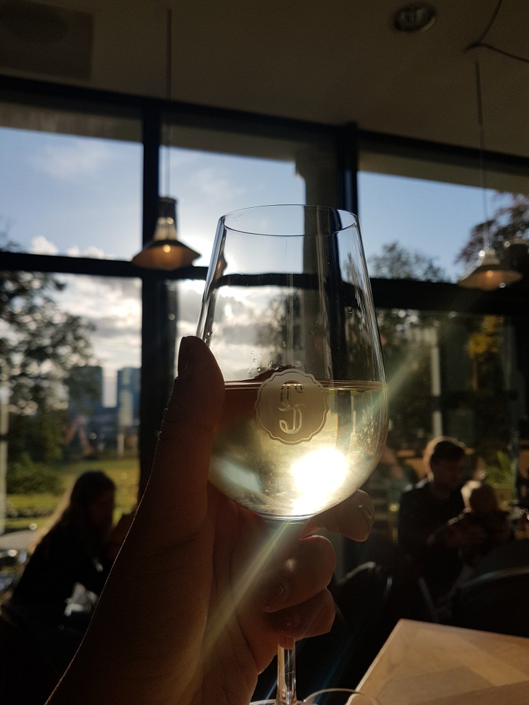 Balik lagi ke area taman berbukit, setelah keliling-keliling, kami berhenti untuk makan siang dan nge-wine. Uhuy. Makan siangnya di salah satu restoran di mansion putih ini, guys. Namanya Stadsvilla (City Villa), dibangun di tahun 1744. You can have lunch or dinner with such a lush vieeew!