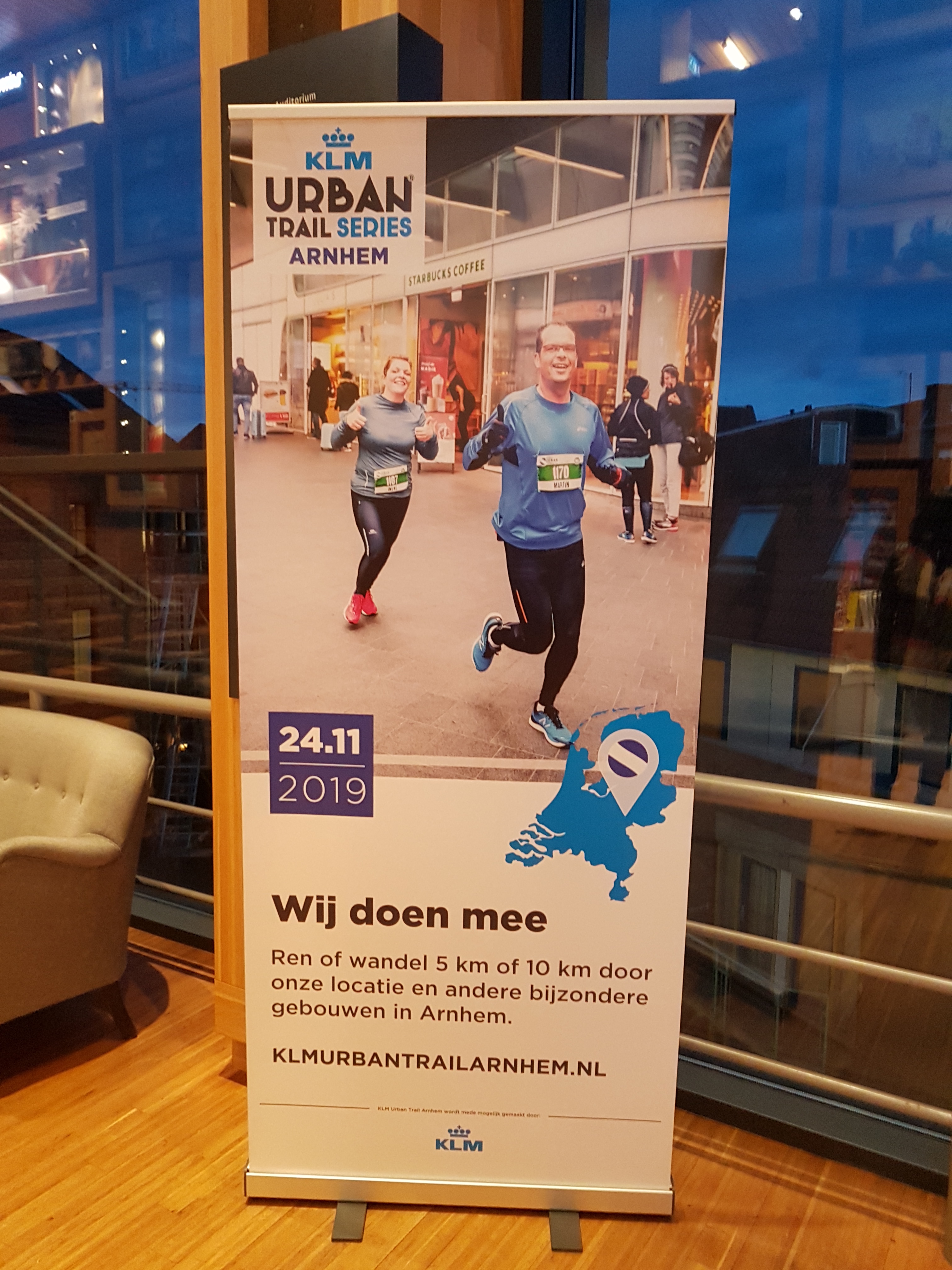 By the way, pas di dalem tuh gue liat ada banner iklan KLM Urban Trail Series Arnhem ini. Langsung gue foto karena kok kayaknya menarik. Kata Mbak Yoyen di Urban Trail ini tuh pesertanya bisa jalan kaki atau lari ngelewatin berbagai gedung dan area indoor di Arnhem. KAN UNIK, YA?! Terus gue baca-baca lagi. Ya pantes sih judulnya “Urban Trail,” karena tujuan dari acara ini adalah supaya peserta lebih mengenali kota mereka. Jadi jalurnya akan diatur supaya lo ngelewatin gedung, taman, lorong, sudut-sudut tersembunyi, atau tempat-tempat yang mungkin sehari-harinya nggak lo lewatin. Total jarak jalan kaki atau lari ini antara 5 km – 10 km. Kalo acara larinya kayak begini, gue mau ikutan! Sungguh menarique~