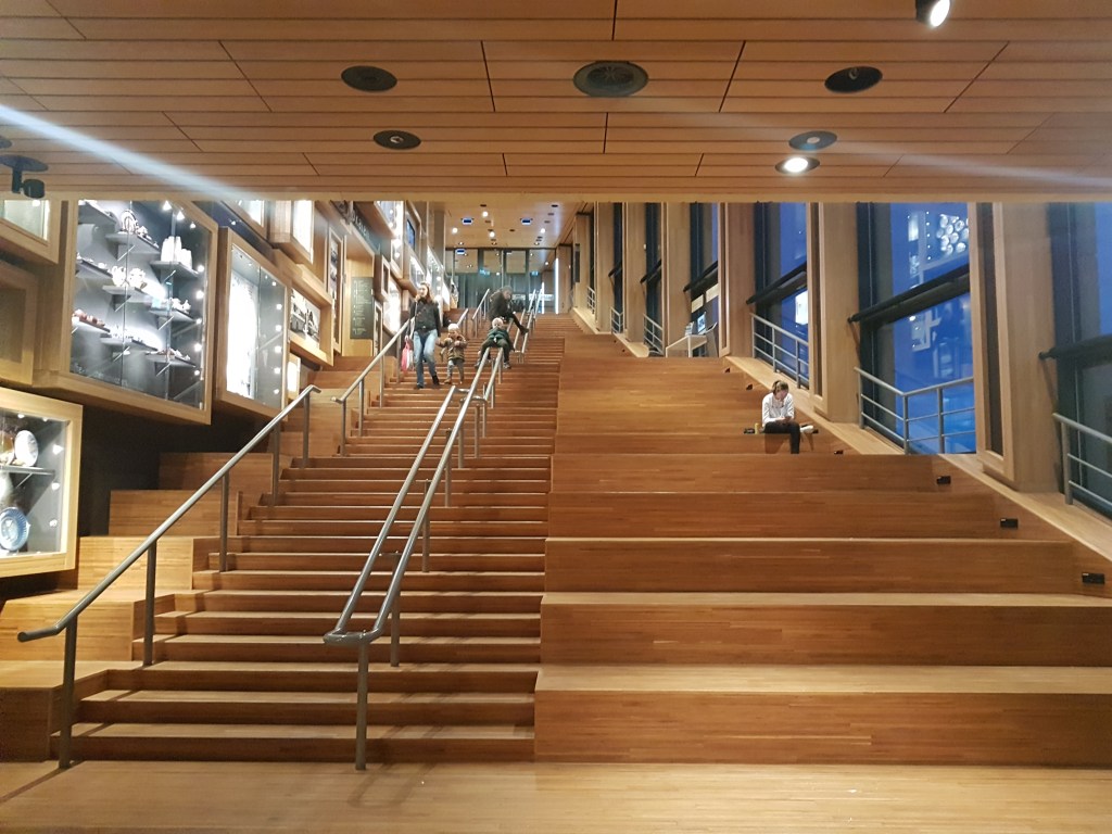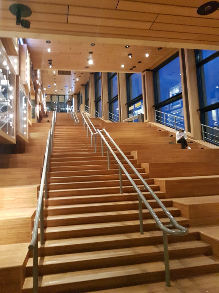 Masih di pusat kota, sore sebelum dinner kami tutup dengan ngunjungin satu cultural center sekaligus perpustakaan di sana. Di gedung ini juga ada sekolah musik dan tari, studio seni, tempat pameran, auditorium, kafe, sama toko buku. All in. Namanya Arnhem Rozet. Gedung ini rampung di tahun 2013 dan desain arsitekturnya dikerjain sama Neutelings Riedjik Architects. Ini foto-foto yang gue ambil pas lagi liat-liat ke dalem…