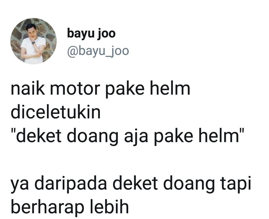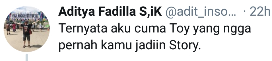 Untuk sekarang, gue cuma pengen jadi orang yang lebih baik dan sayang sama diri sendiri. Jalanin hidup sebaik mungkin. Nggak jahatin orang lain. Ngejaga hubungan gue sama orang-orang terdekat gue yang baik-baik banget. Terus berkarya, dan jadi kaya raya biar suatu hari bisa nge-tweet kayak gini.