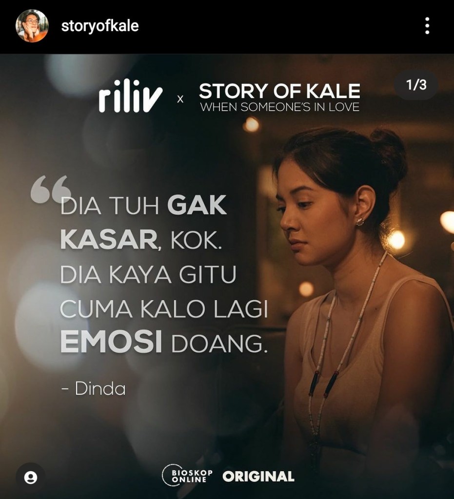 Nah, atas dasar alasan Kale ke Awan itulah gue jadi tertarik untuk nonton “Story of Kale” yang digadang-gadang sebagai prequel dan backstory kenapa Kale sampe nggak mau berkomitmen. Awalnya gue pikir film ini bakal agak hawa-hawa National Geographic Animals gitu (= Asal Muasal Terciptanya Buaya), karena menurut gue wajar banget cowok atau cewek bisa jadi “buaya” dan trauma berkomitmen lagi kalo dulu sempet sakit hati banget. Mungkin dia udah ngasih segala-galanya dan berusaha jadi pacar yang baik dan pengertian dengan segala kapasitasnya, tapi tetep aja nggak bisa bareng dan ditinggal sang mantan. Sebelum nonton ini, di kepala gue, Kale yang dulu emang devoted dan selfless banget sebagai pacar, in a good way. Wajar dong sampe trauma pacaran lagi kalo mantan pacarnya brengsek? Tapi setelah gue denger alasan dia ke Awan dan nyocokin apa yang terjadi di hubungan dia dan Dinda di film ini. I’m sorry Kale…