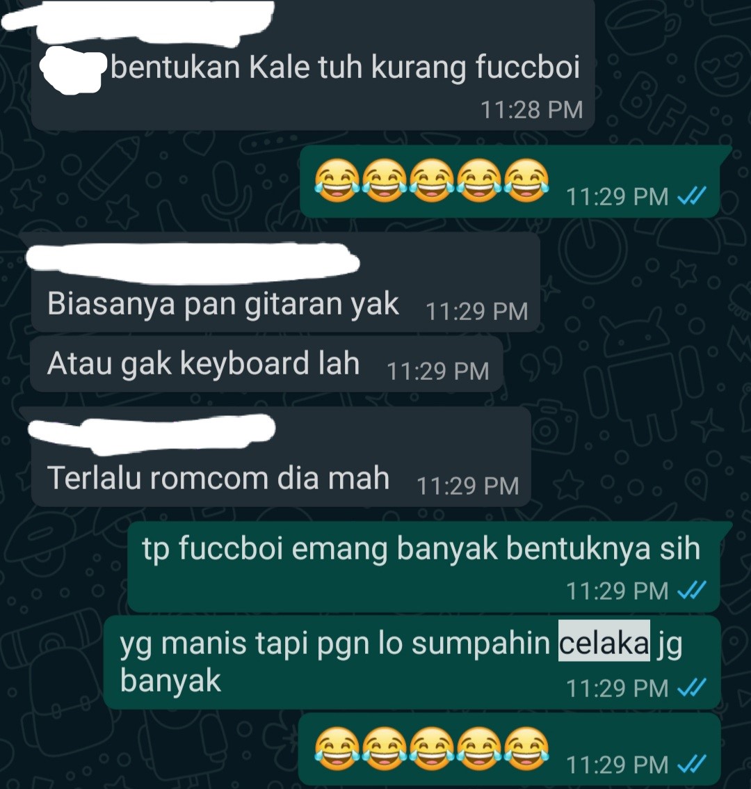 Terus setelah gue perhatiin, ya, emang dasar fuckboi cetakan pabrik, ternyata teknik pedekatenya dia sama, dong. HAHAHA. Awan… Awan… kesian bener lu S.O.P-nya disamain.