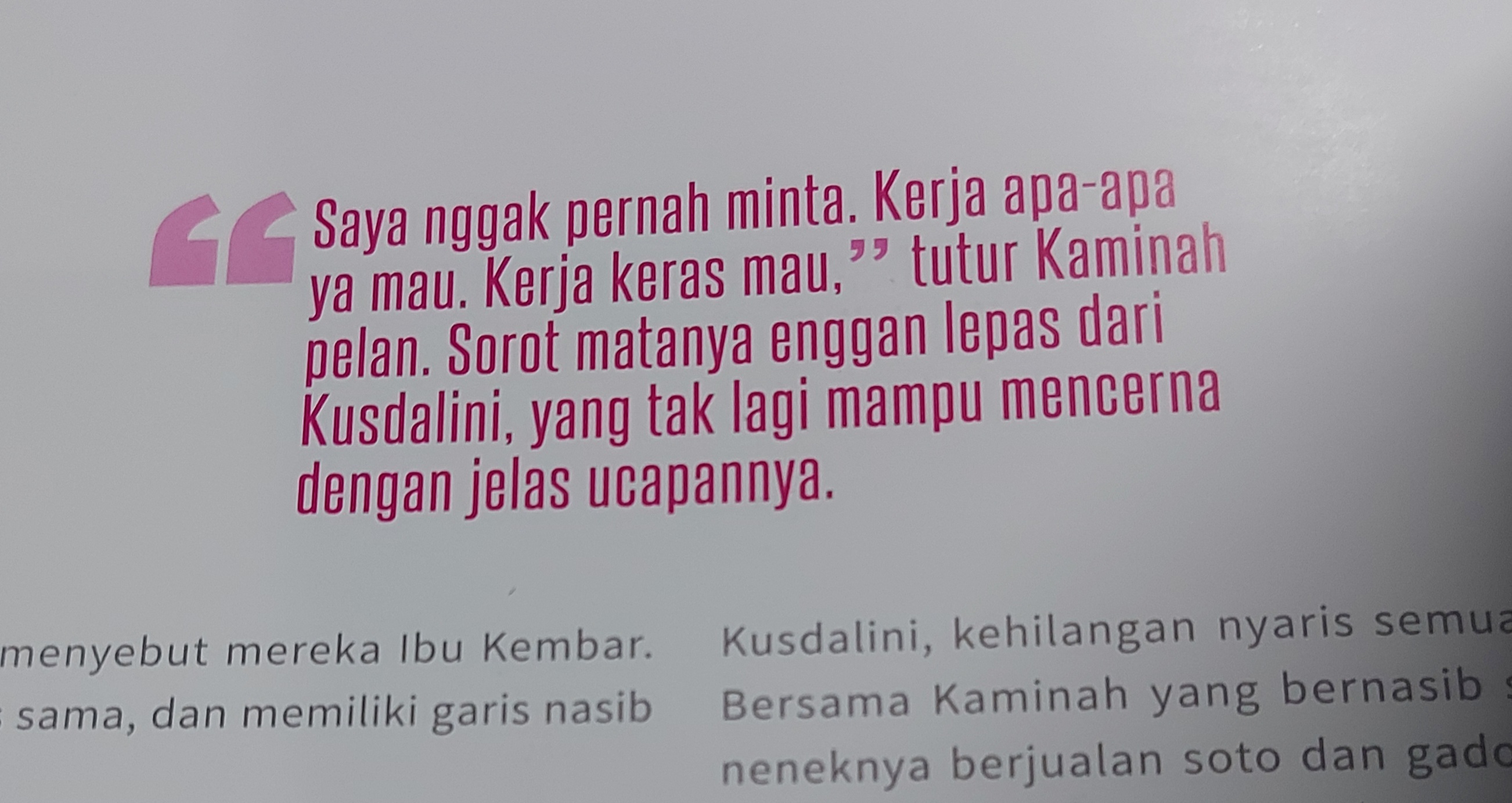 Lalu gue nonton “You and I” dan hati gue rasanya pilu banget. Ada banyak hal yang nggak adil yang terjadi di kehidupan gue, tapi setelah nonton film ini gue ngerasa kayak nggak layak ngeluh sama sekali. Bukan berarti masalah gue sepele, ya. What I feel is valid, but I can’t imagine if I was in the same situation as theirs. Setelah ngikutin ceritanya, gue bisa bilang Mbah Kaminah dan Mbah Kusdalini benar-benar perwujudan perempuan-perempuan tangguh pemenang kehidupan. Persis kayak judul buku yang mendokumentasikan foto dan cerita mereka, “Pemenang Kehidupan” karya Adrian Mulya.